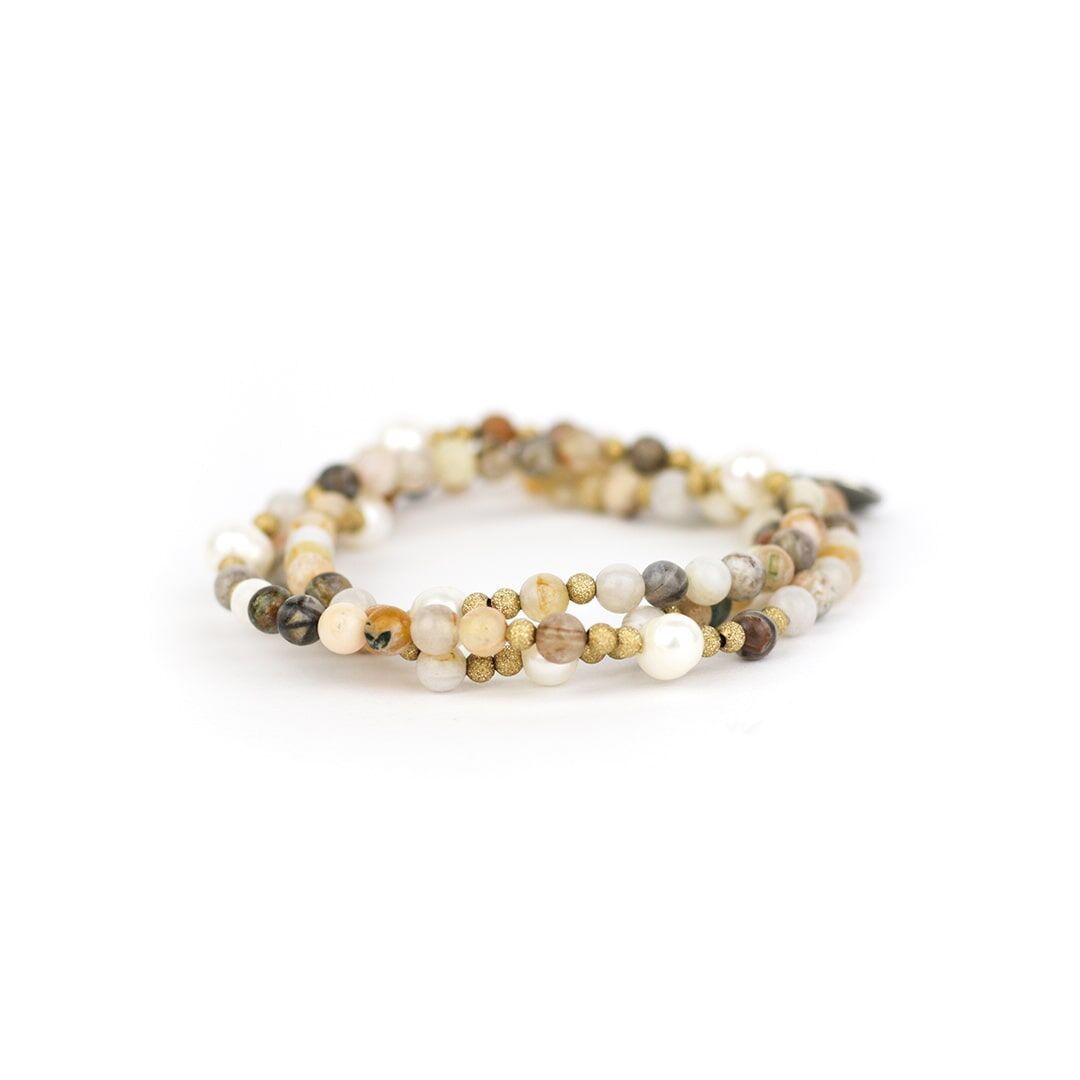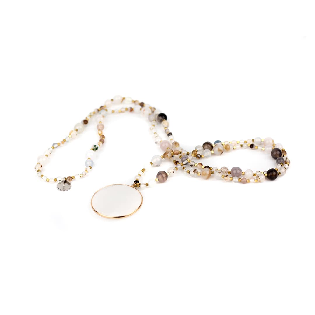 Verschieden große Edelsteine mit feiner Facettierung reihen sich gemeinsam mit zarten goldenen Kügelchen an unser Armband ‘Nona’ aneinander – ein wirklich edles Ensemble. Mit diesem Accessoire setzt du ein Statement – trage es einzeln oder kombiniere es mit anderen Schmuckstücken.