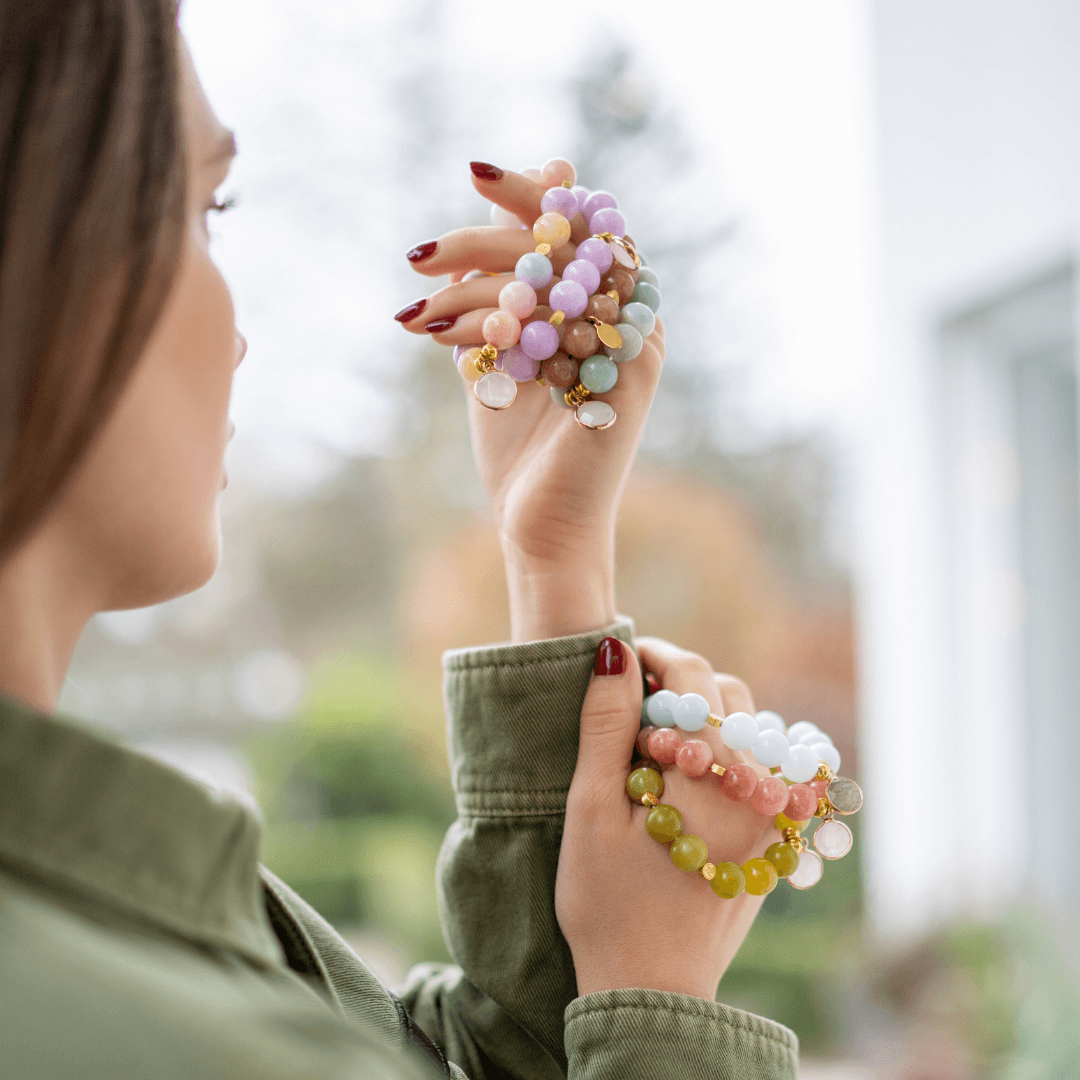 Manchmal scheint es, als würde sich die Erde zu schnell drehen, sodass wir uns in unserem Alltag verlieren Mit den handgemachten Armbändern dieser inrosa-Kollektion fällt es umso leichter, sich an den Ursprung zu erinnern und sich zu erden. Unsere Edelsteinarmbänder sind inspiriert von der positiven Energie der Edelsteine und schenken dir Kraft im Alltag. Lass dich verzaubern von unserer edlen Schmuckauswahl mit Edelsteinen.