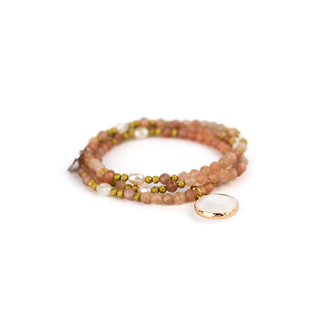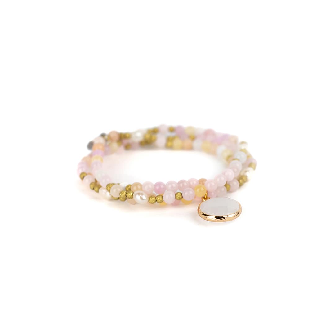 Material: Edelsteine Jade (weiß und lemon). mother of pearl (creme) Aquamarin (blau), Sunstones (rosa), Tourmaline (bunt) Morganite ((pastel), Feldspat (bronze)