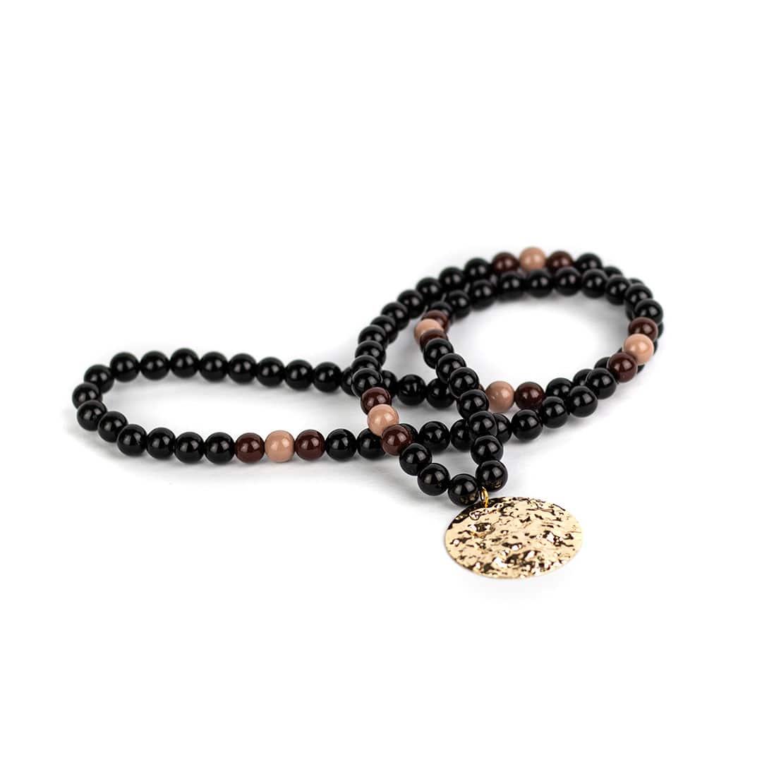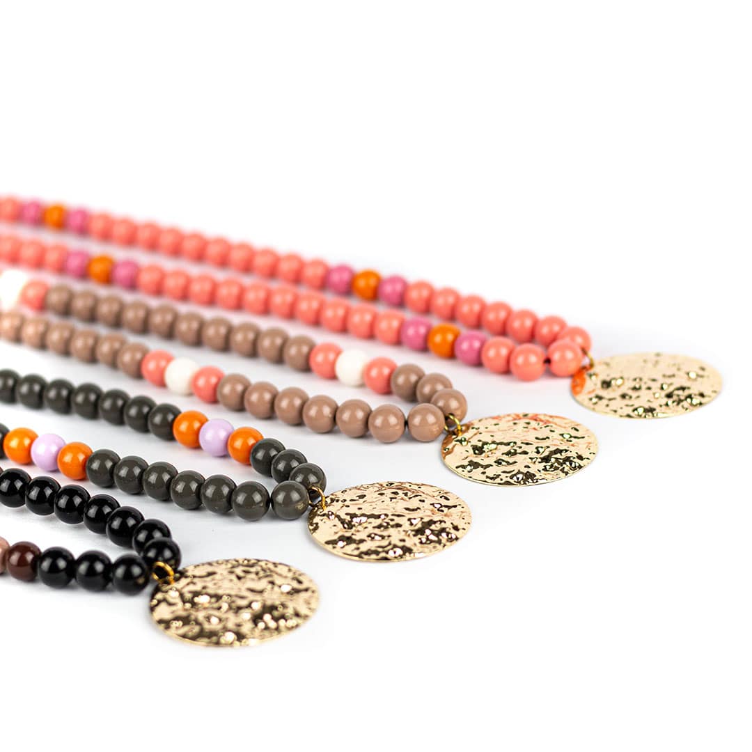 Die opulenten und leichten Beads schmiegen sich angenehm um deinen Hals. Der goldene Anhänger sorgt für den perfekten LOOK.