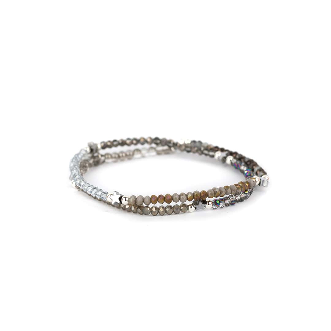 Zweifach um den Arm gewickelt wird unser Armband ‚Shima‘ aus Stretch. Mit seinen schimmernden Kristallen in unterschiedlichen Farben ist ‚Shima‘ ein erfrischender Begleiter durch deinen Tag. Kleine silberfarbene Sterne machen das süße Accessoire perfekt.