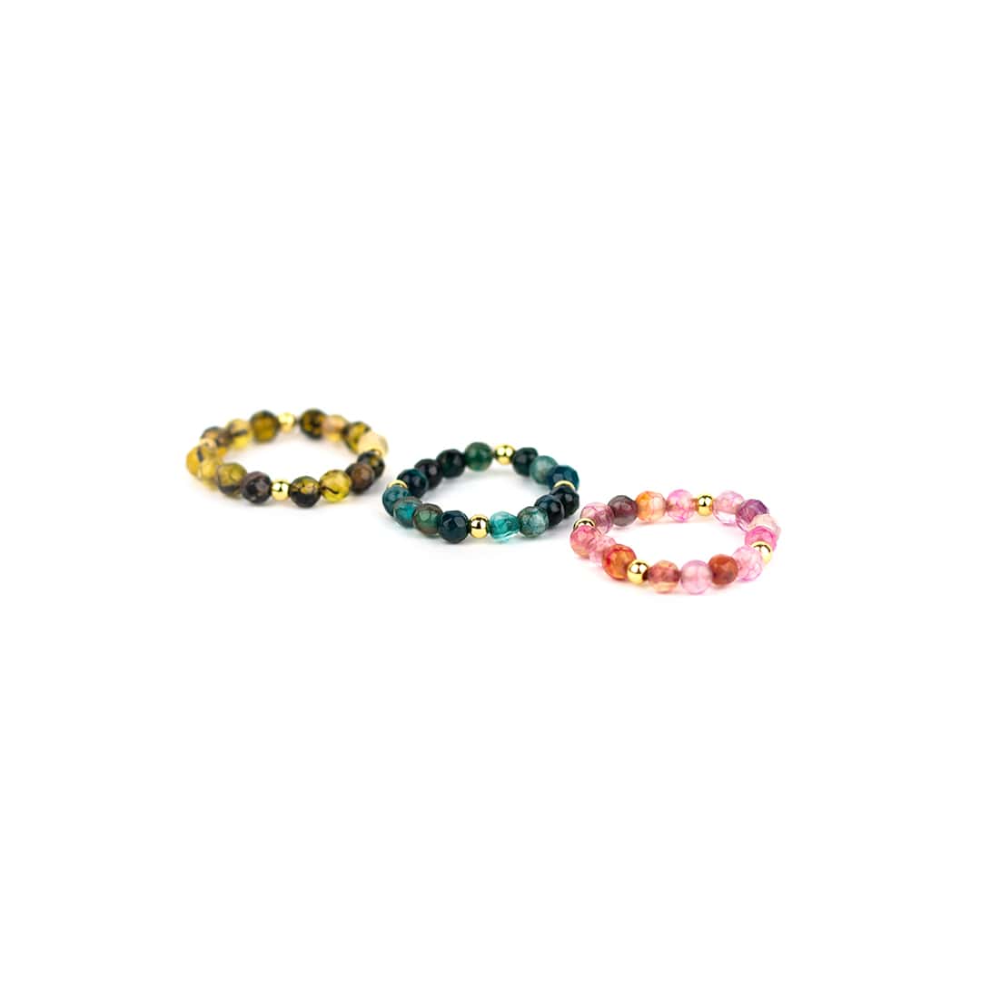 Ausdrucksstark und schlicht zugleich: Unsere Trilogie ‚Trix‘ ist durch einen einzigartigen Mix von natürlichen Achat Edelsteinen charakterisiert. Du kannst die drei Ringe einzeln oder auch als individuellen Ring Stacking-Look tragen – ein Schmuckstück für jeden Anlass.